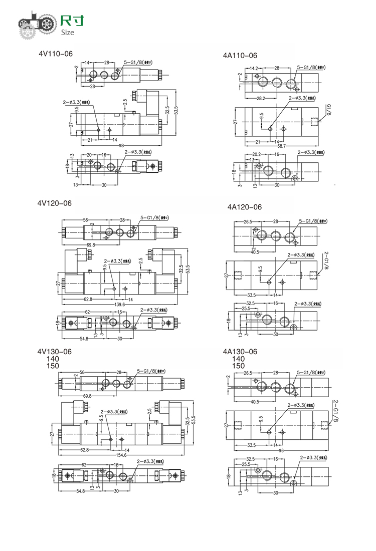 4V100系列 先導(dǎo)式5通電磁閥、氣控閥