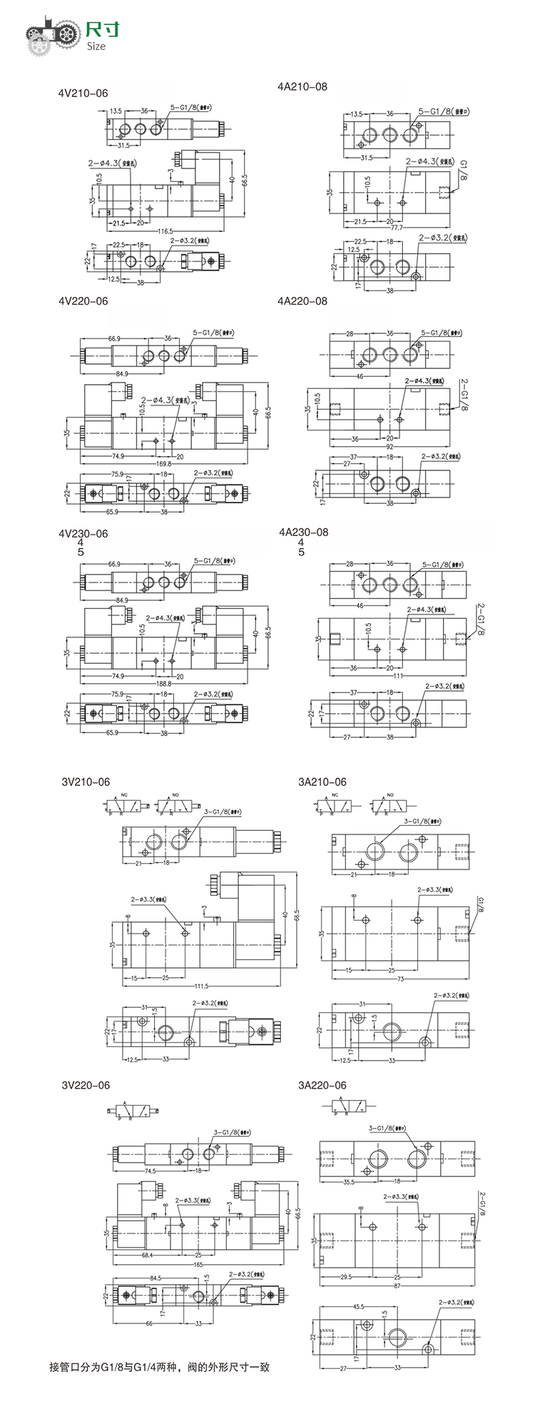 4V200系列 先導式3通5通電磁閥、氣控閥